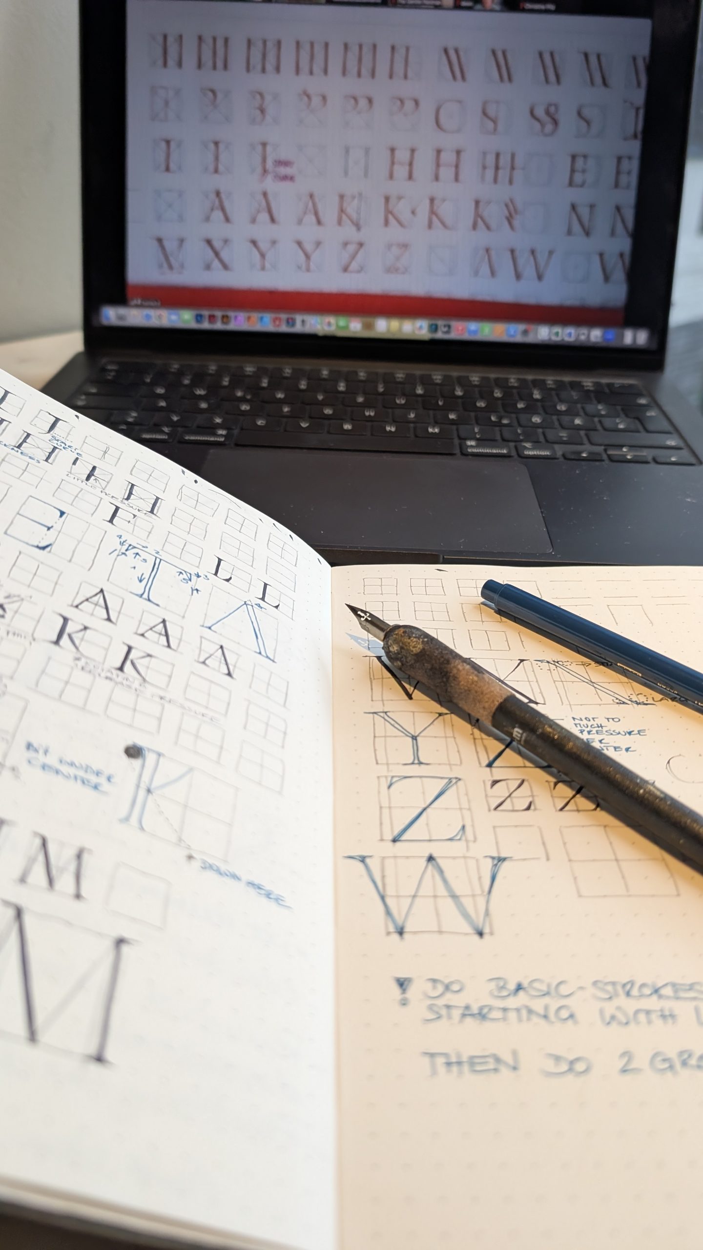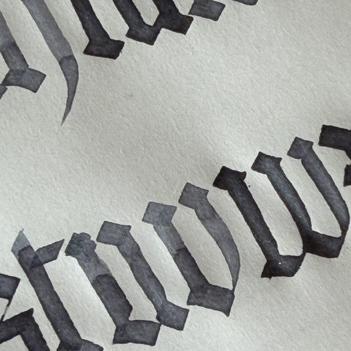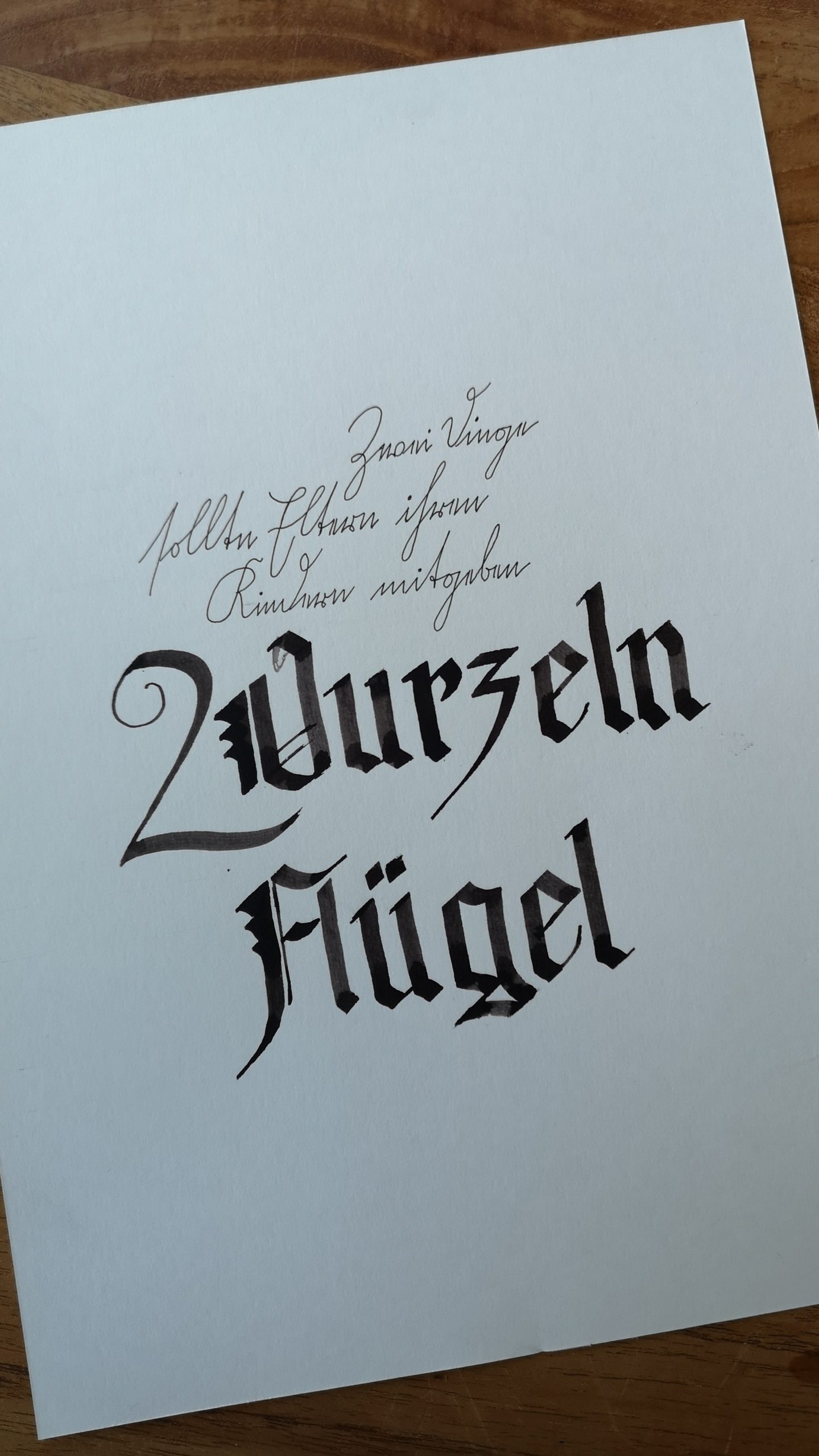 Viele Jahre nach meinem Grafik-Design-Studium und Jobs in mehreren Agenturen hab ich in einem Kurs bei Petra Beisse auch meine Liebe zur Kalligrafie entdeckt und mit mehreren Pausen in den letzten Jahren wieder zu Tinte und Feder gefunden.