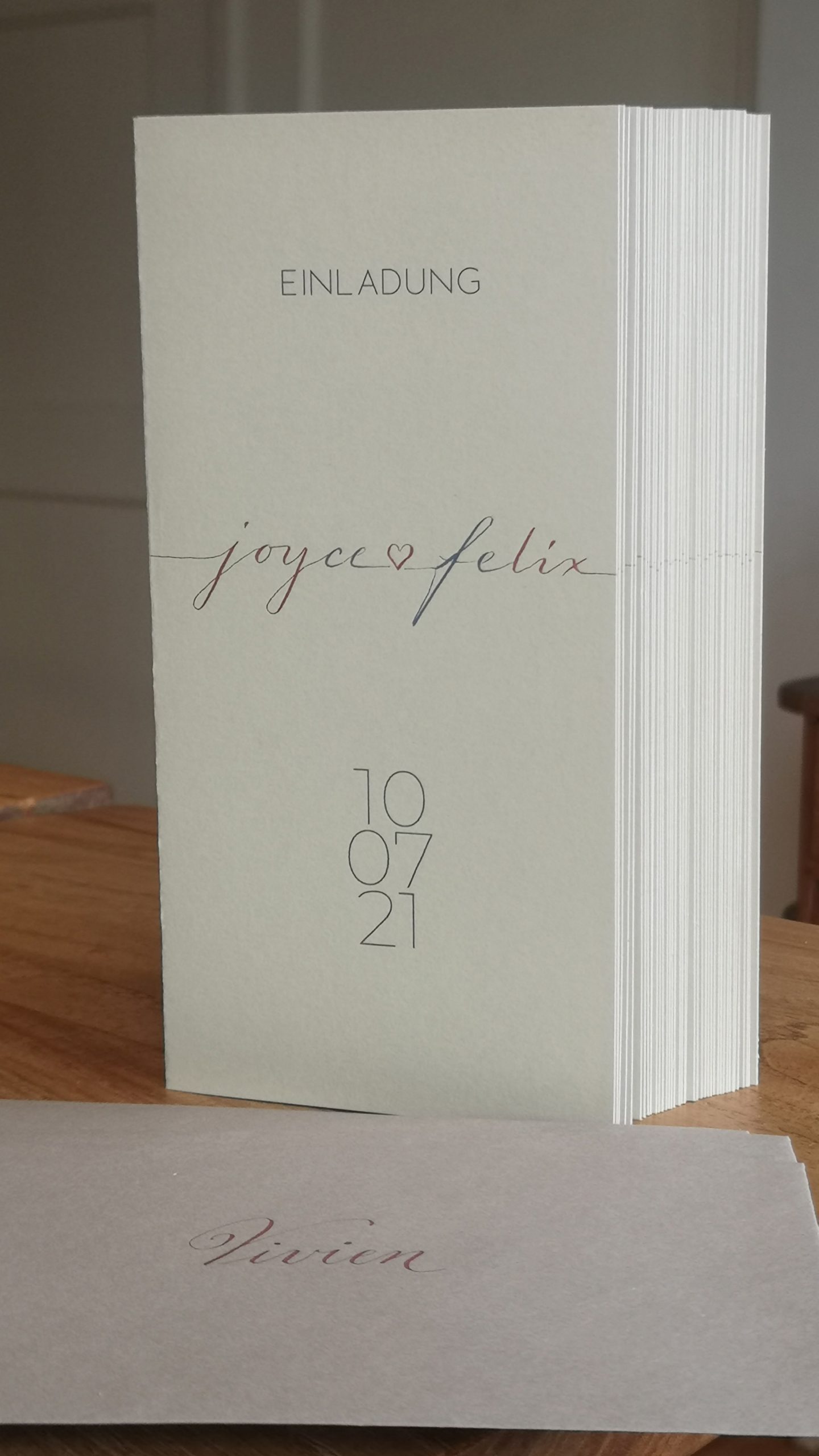 … gemeinsam bringen wir sie zu Papier und zum Leben. Ob hochwertig gestaltete Grußkarten, Einladungen, Schaufenstergestaltung oder festlich geschriebene Texte, Hochzeitspapeterie – gern bin ich bei der Umsetzung behilflich.